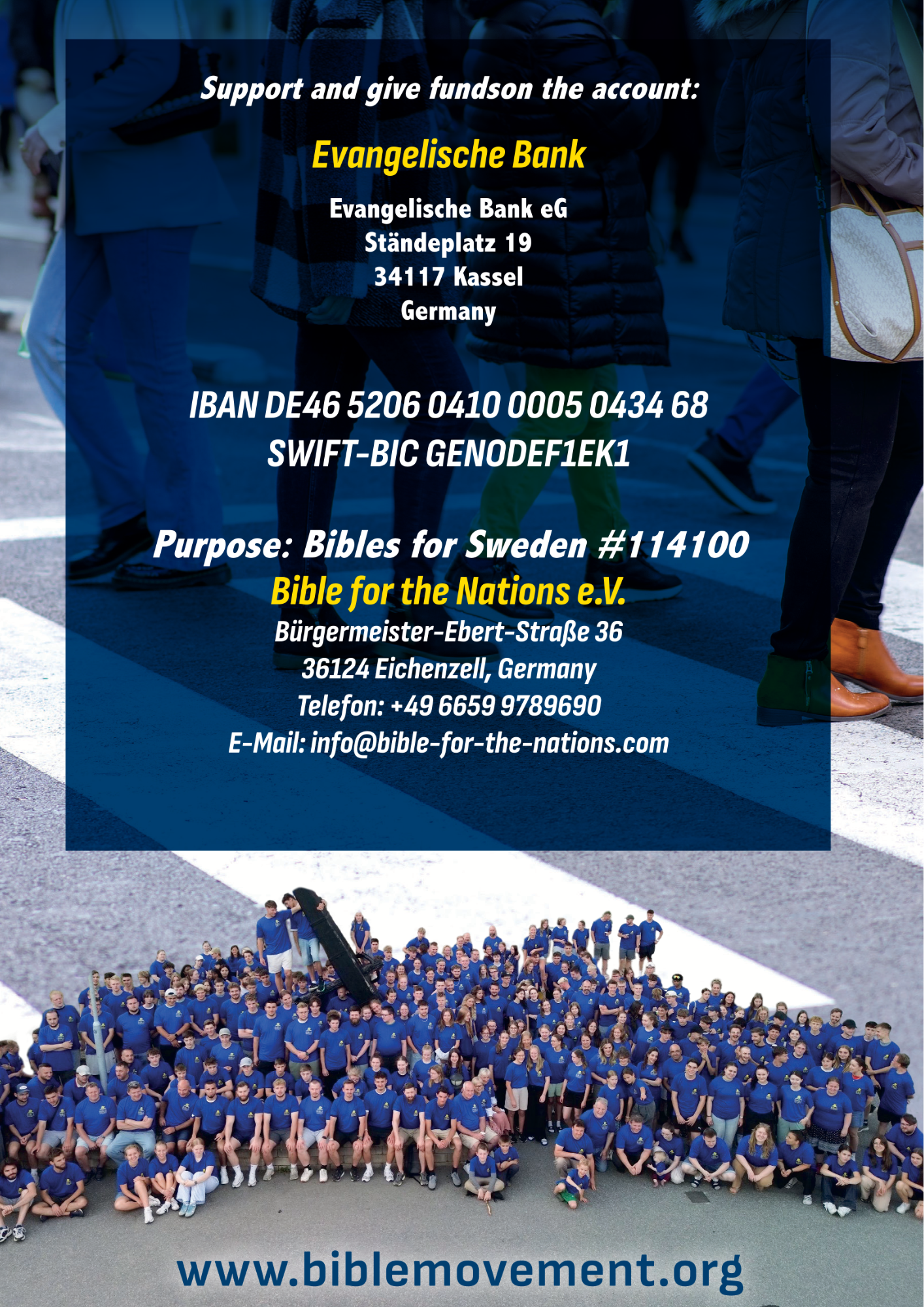 Account holder: BIBLE FOR THE NATIONS E.V.